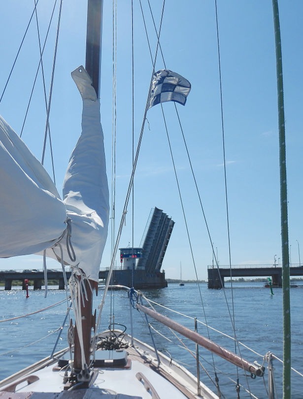 til at passere broen fra samme side, skal sejlskibe have fortrinsret