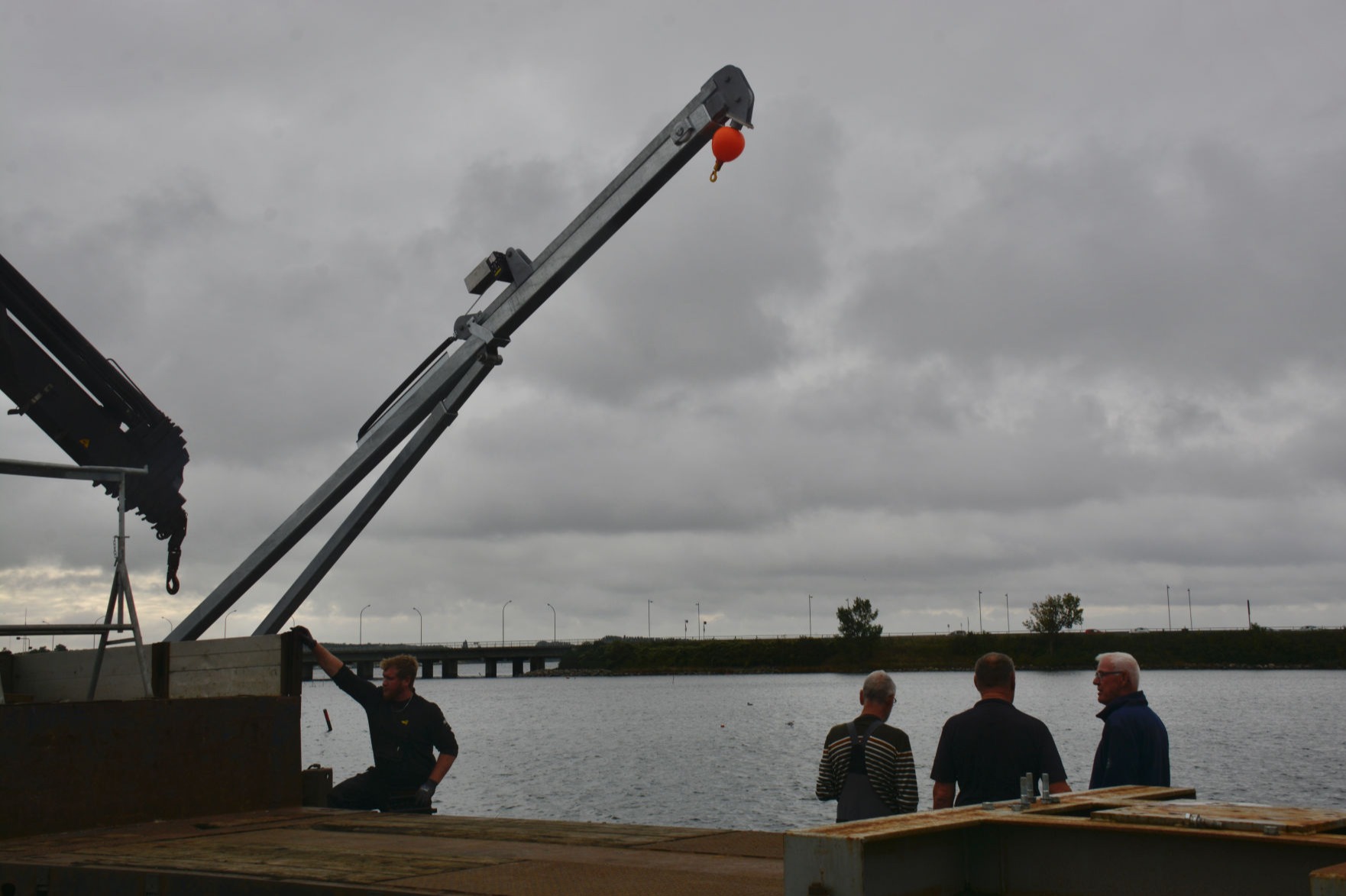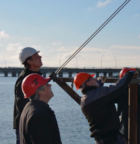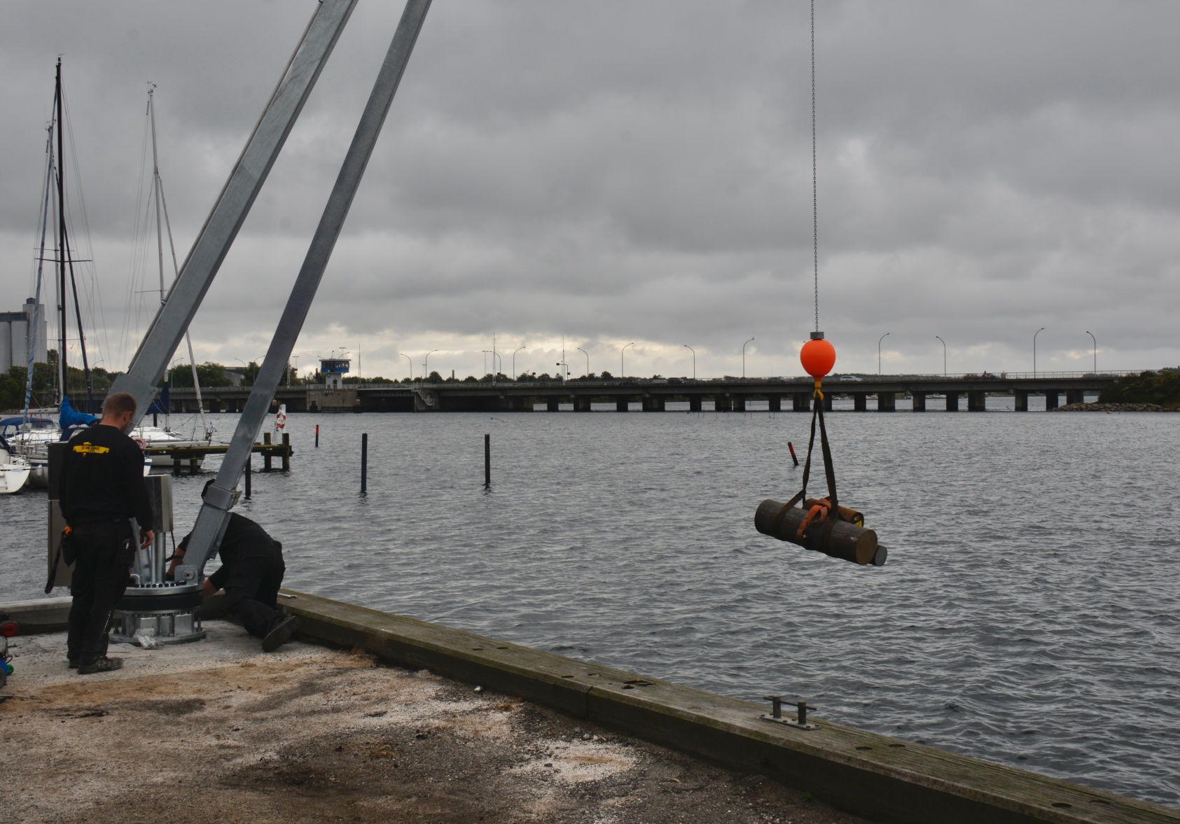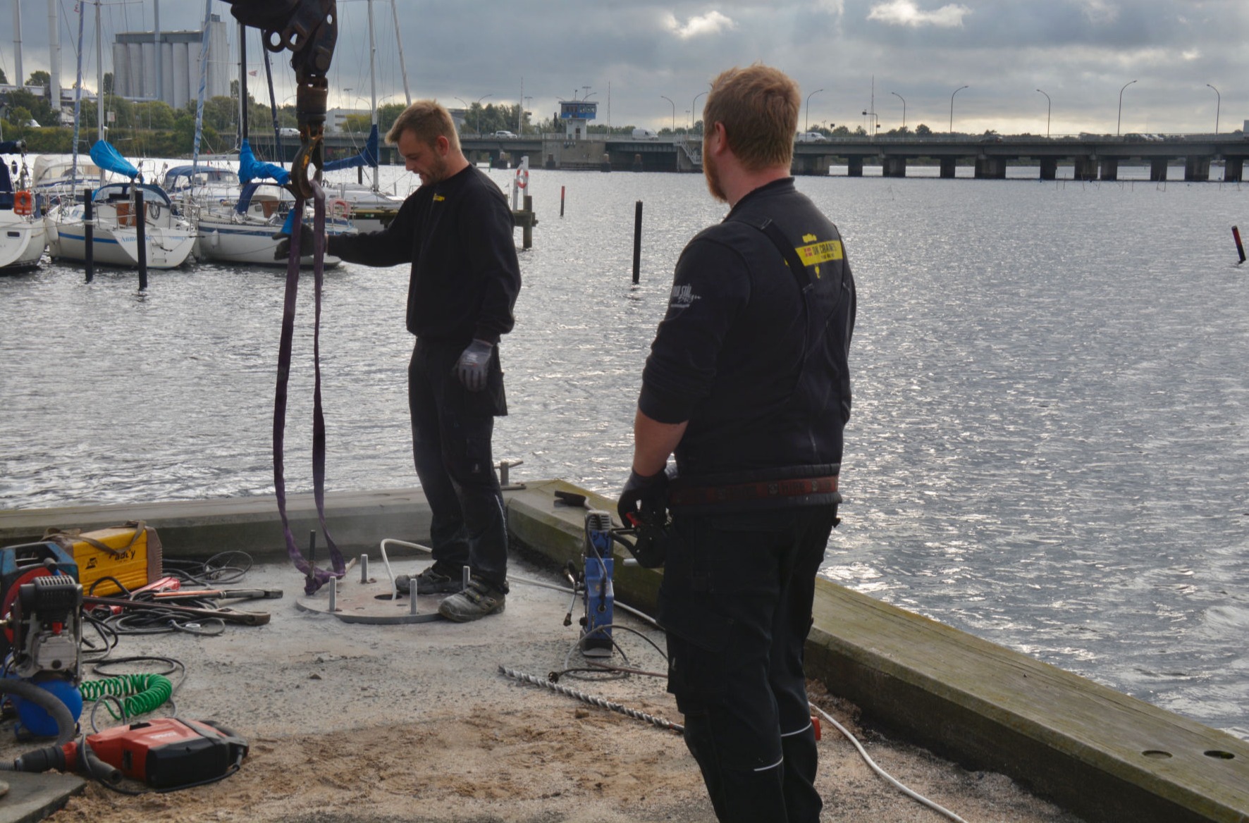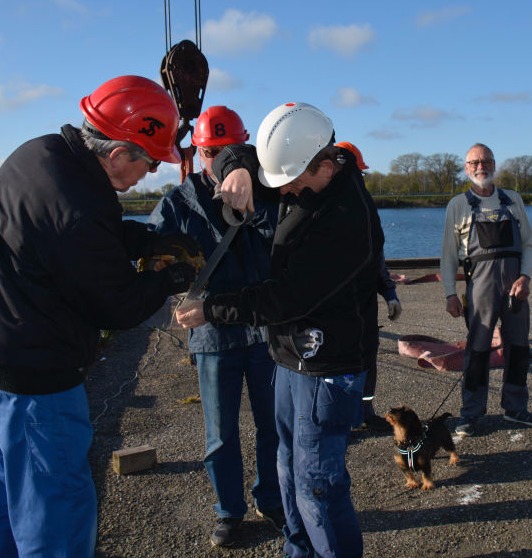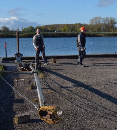 Arbejdet udføres fra en pram, der assisteres af en slæbebåd, der kan kontaktes på VHF kanal 16.
