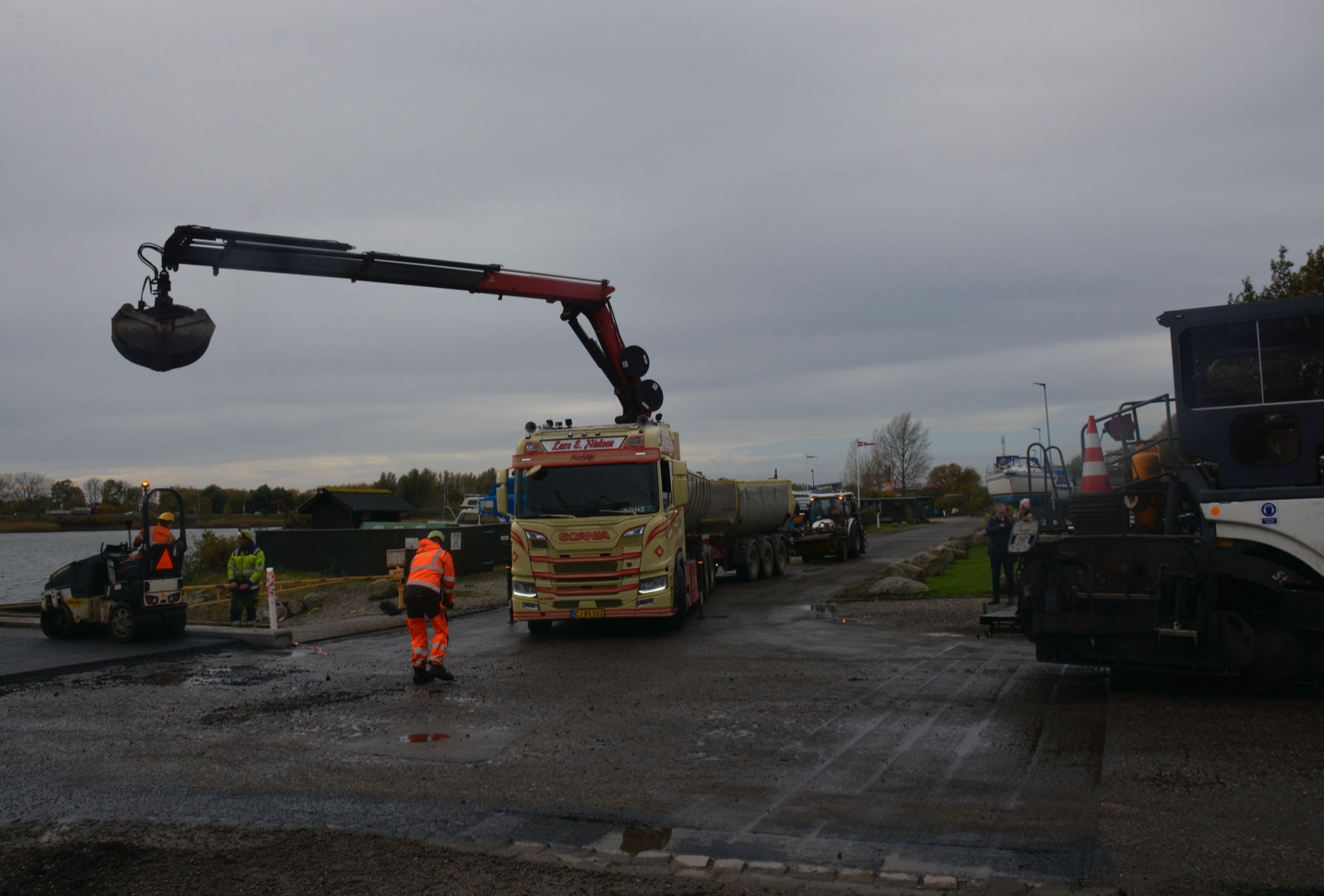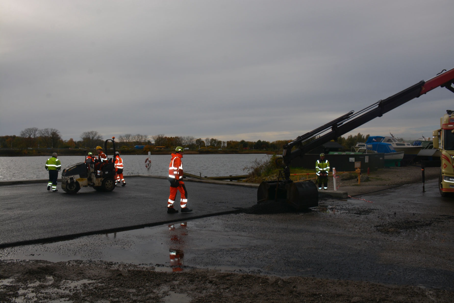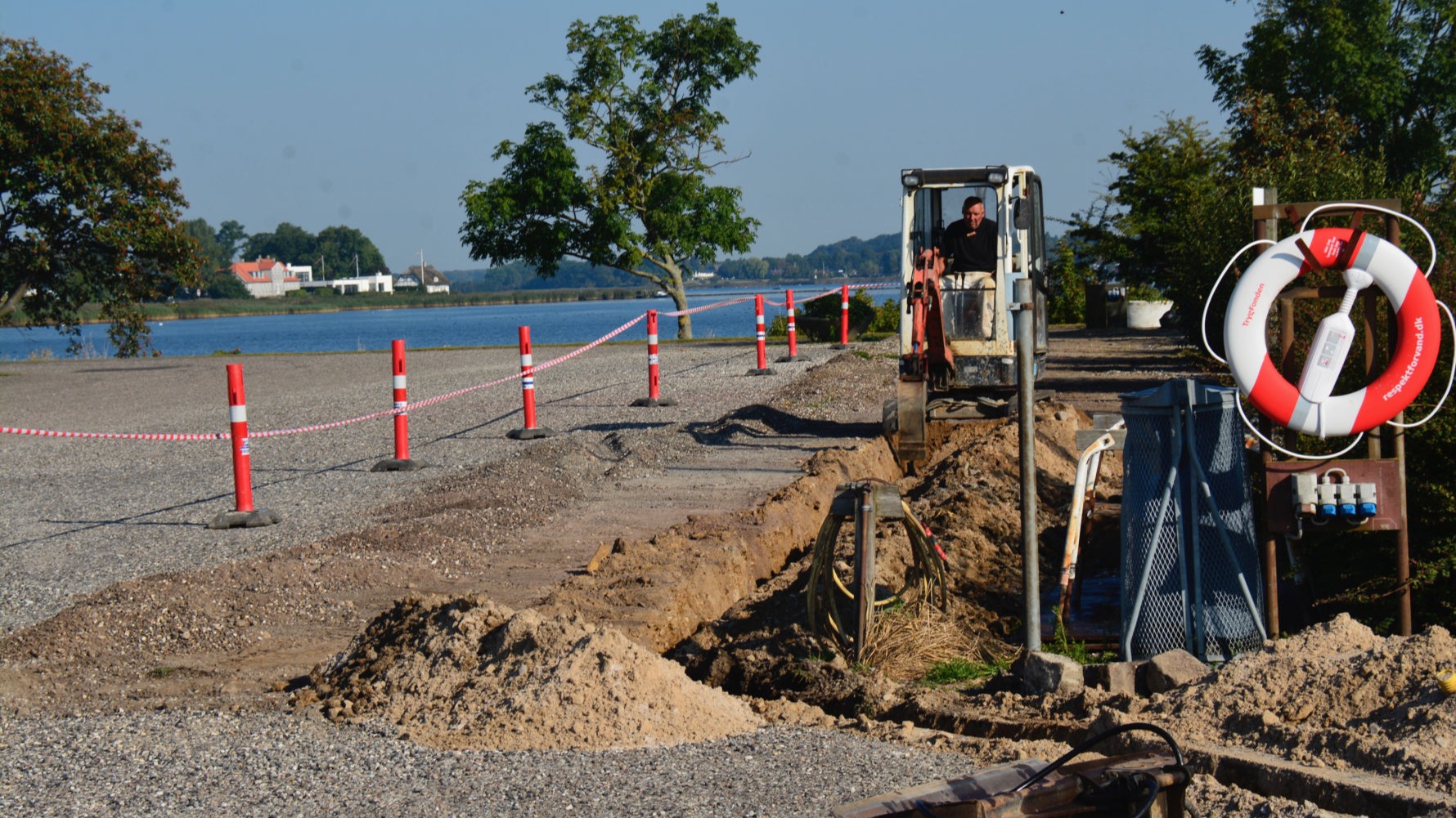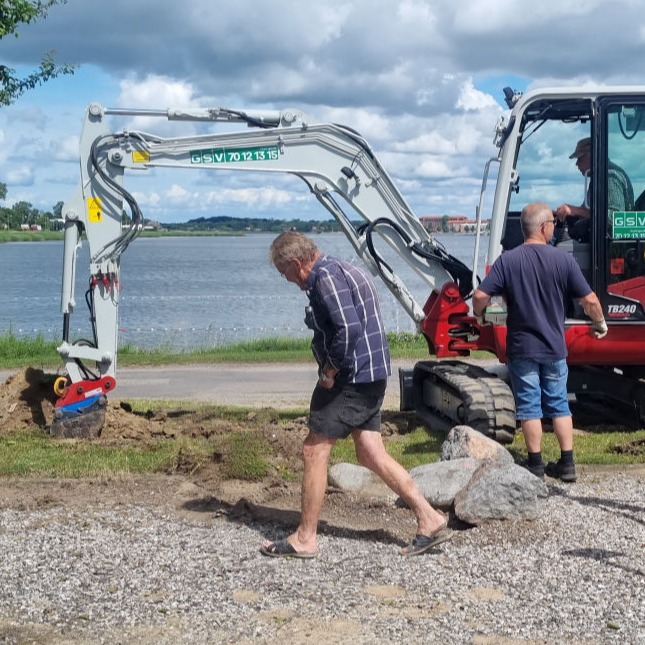 Arbejdet udføres fra en pram, der assisteres af en slæbebåd, der kan kontaktes på VHF kanal 16.