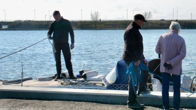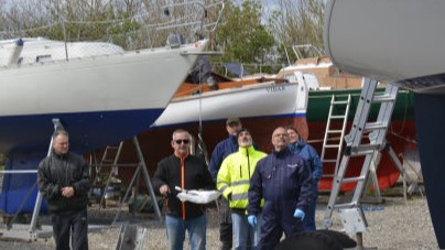 Første båd på land var "Columbine", en flot Bandholm 33.
