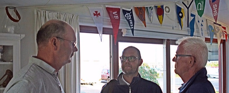 Fra venstre: Per Thomsen, "Grønsund", Henrik Tang, Dansk Sejlunion og Jan Krastrup, formand for Toreby Sejlklub forud for mødet.