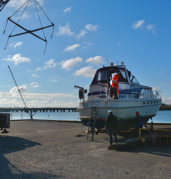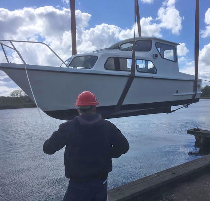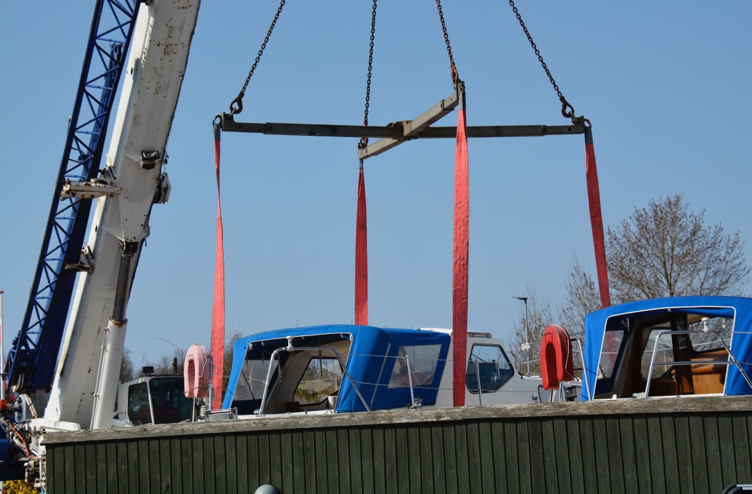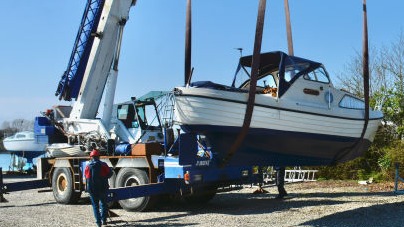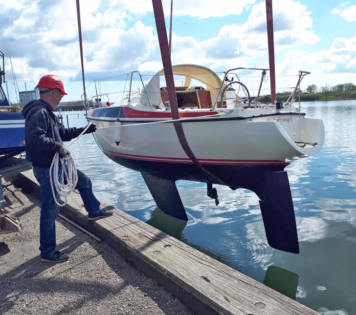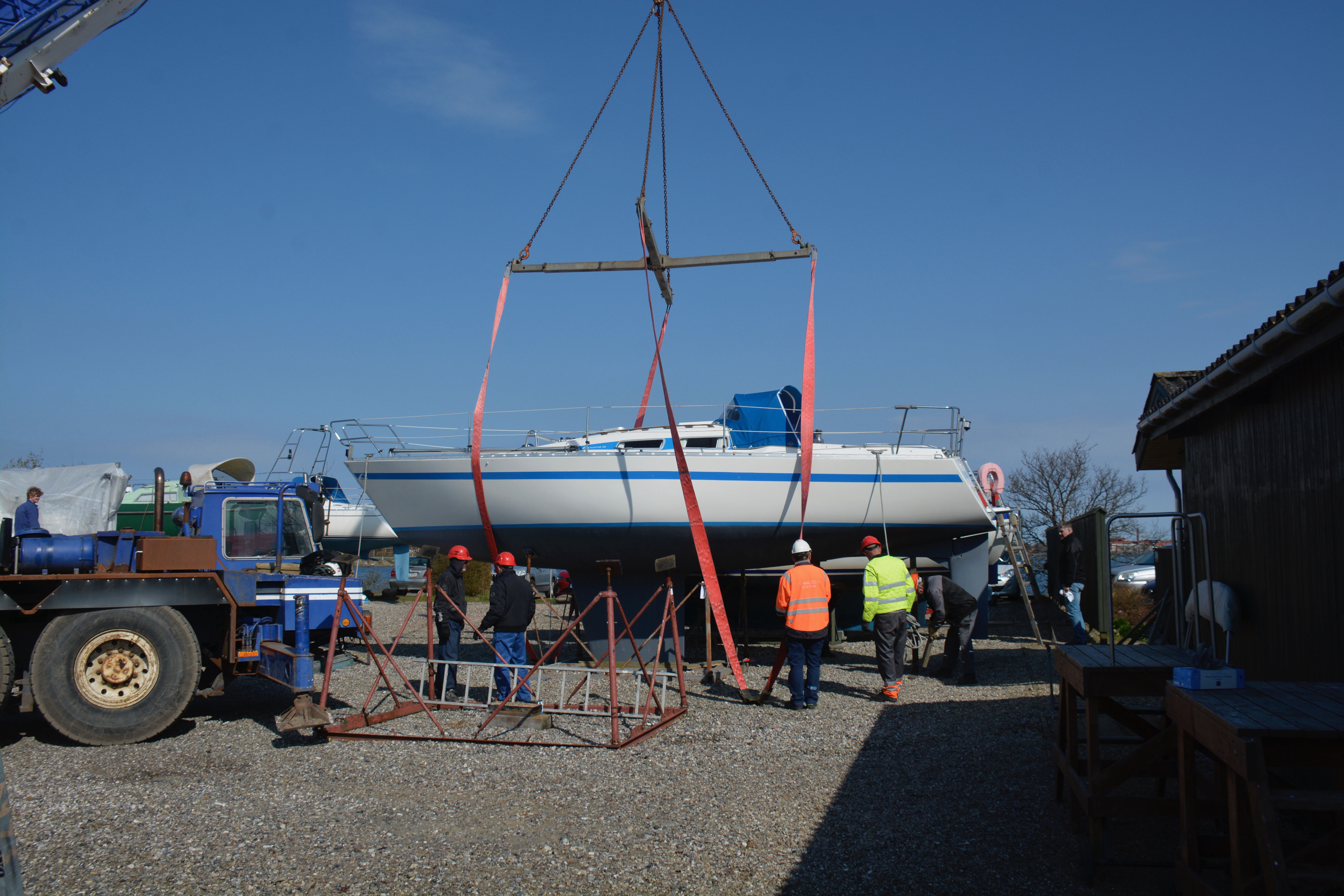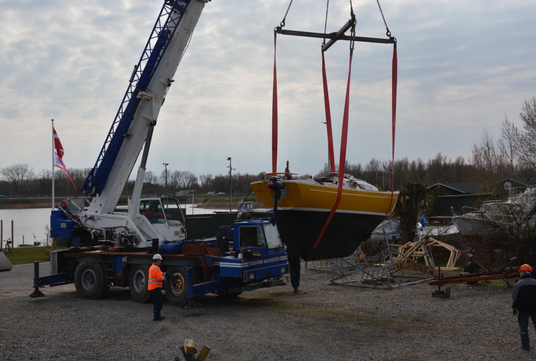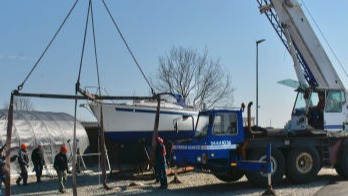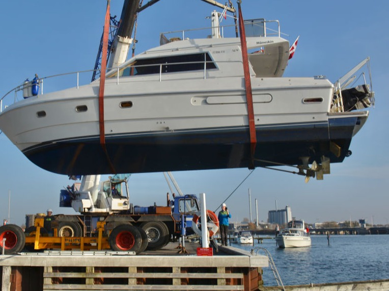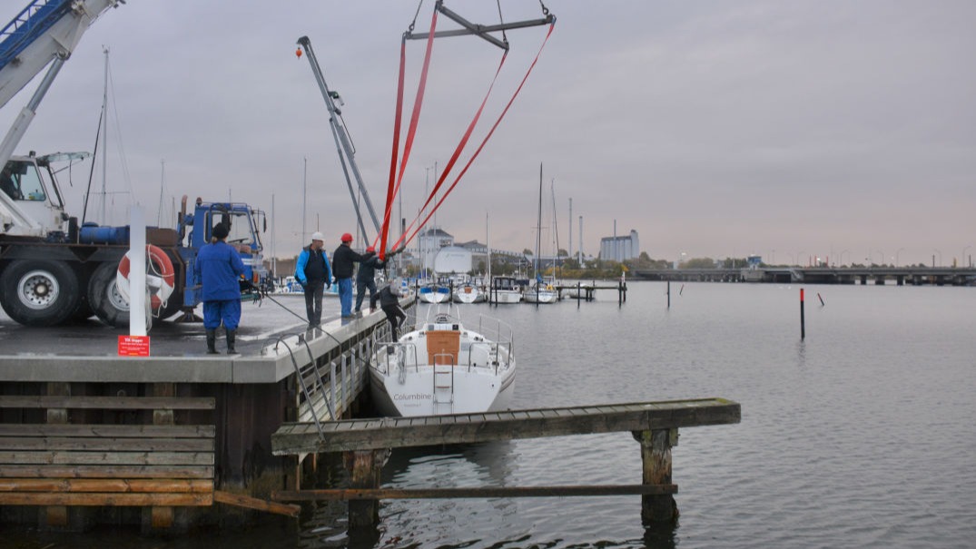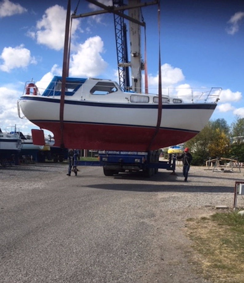"Måneskin" hejses op og sættes på bådvognen.