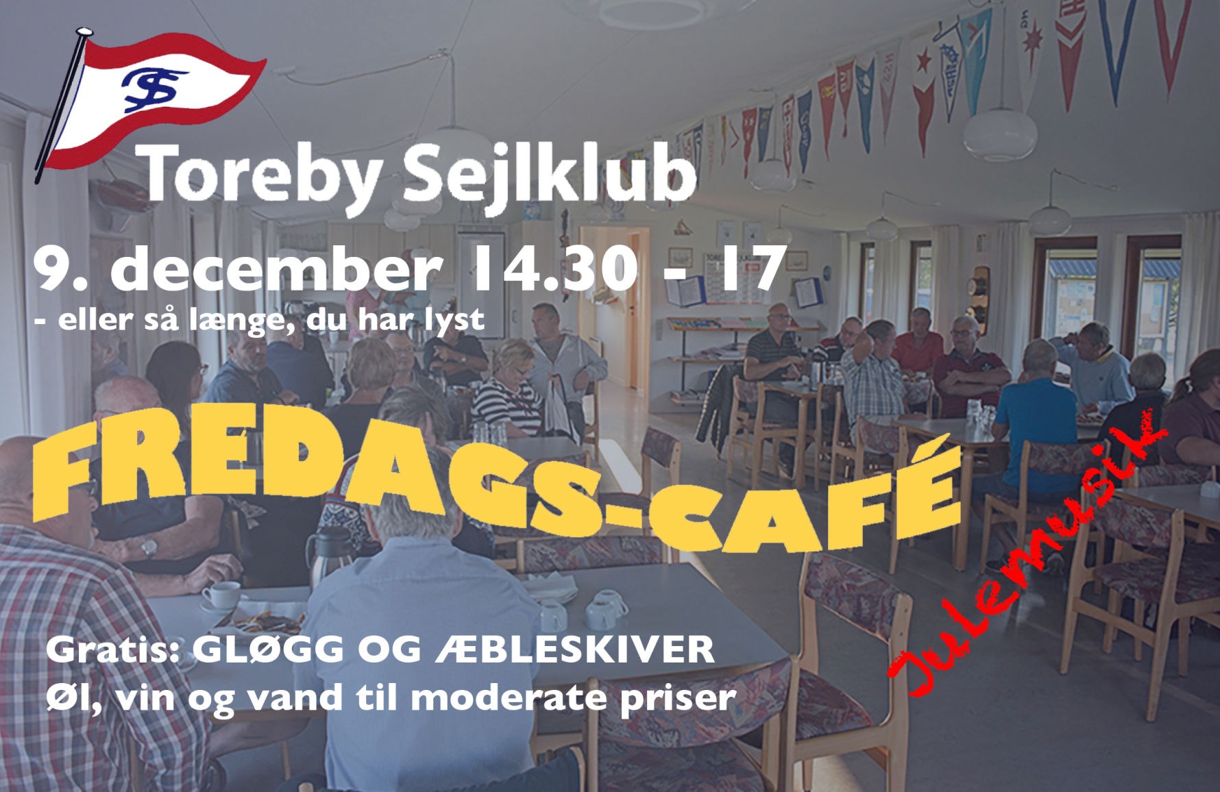 Kl. 21,00 – 00,00: Musik. Der er mulighed for at få en svingom, så tag gerne danseskoene med.