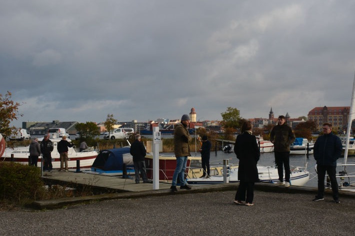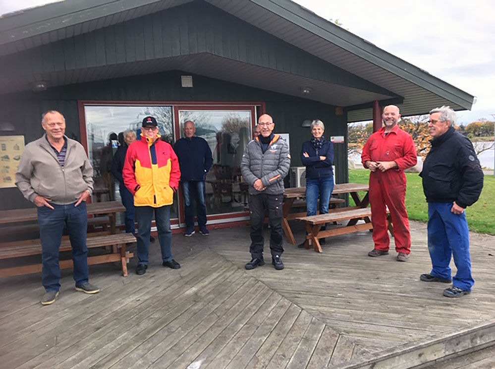 Fra venstre næstformand for Sejl- og Motorbådsklubben Grønsund Birger Mikkelsen, formand for Guldborgland Bådelaug Claus Pedersen, Sejlforeningen Vikingens formand Ulla Klimt, udvalgsformand Ole K. Larsen, Palle Tørnqvist formand for Toreby Sejlklub og formand for Bådklubben Guldborgsund, John Kildsgaard. Nysted Sejlklub, der også er med i samarbejdet, havde ikke mulighed for at møde med en repræsentant. Foto Susanne Lose
