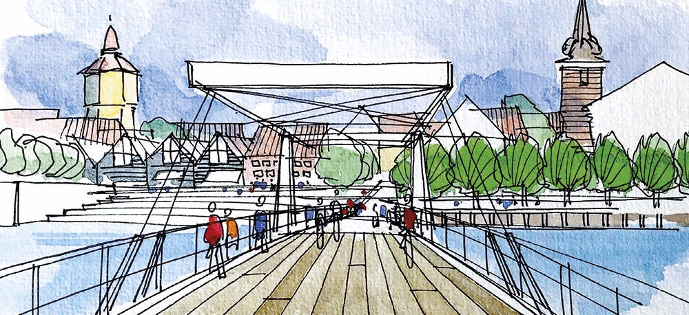 Banedanmarks illustration af den nye jernbanebro med klap.