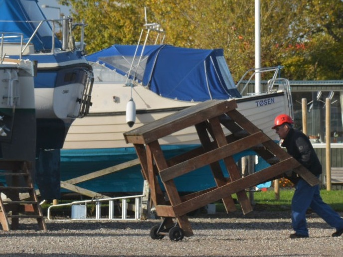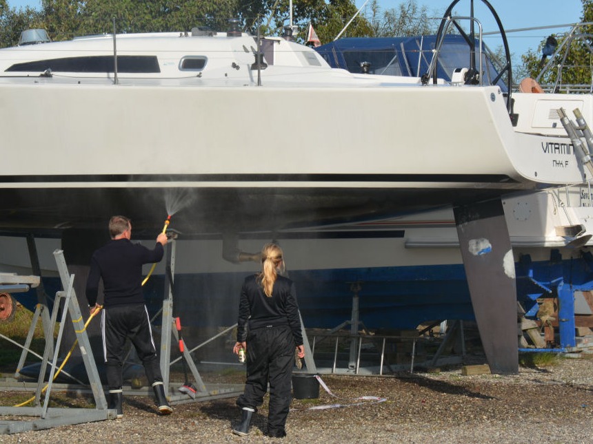 Når du spuler din båd om efteråret, skal eventuelle rester af bundmaling samles op og bortskaffes lovligt, selv om bundmalingen er lovlig. Ved slibning kan du bruge klubbens miljøstøvsuger eller opsamle slibestøv og malingrester på en presenning.