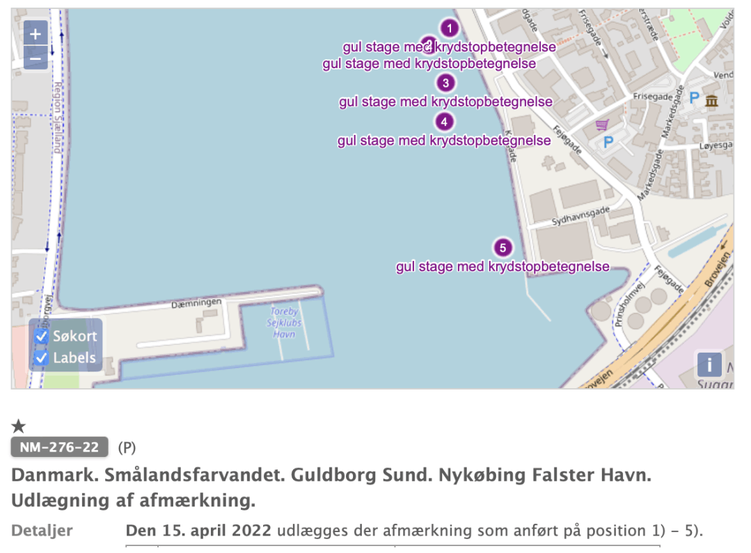 "Hermed Kystdirektoratets tilladelse til udlægningen af to turbøjer ved Guldborg Sund syd. Jeg håber at I, samt andre sejlere får glæde af anlægget. Med venlig hilsen. Julie Elisa Søby.
