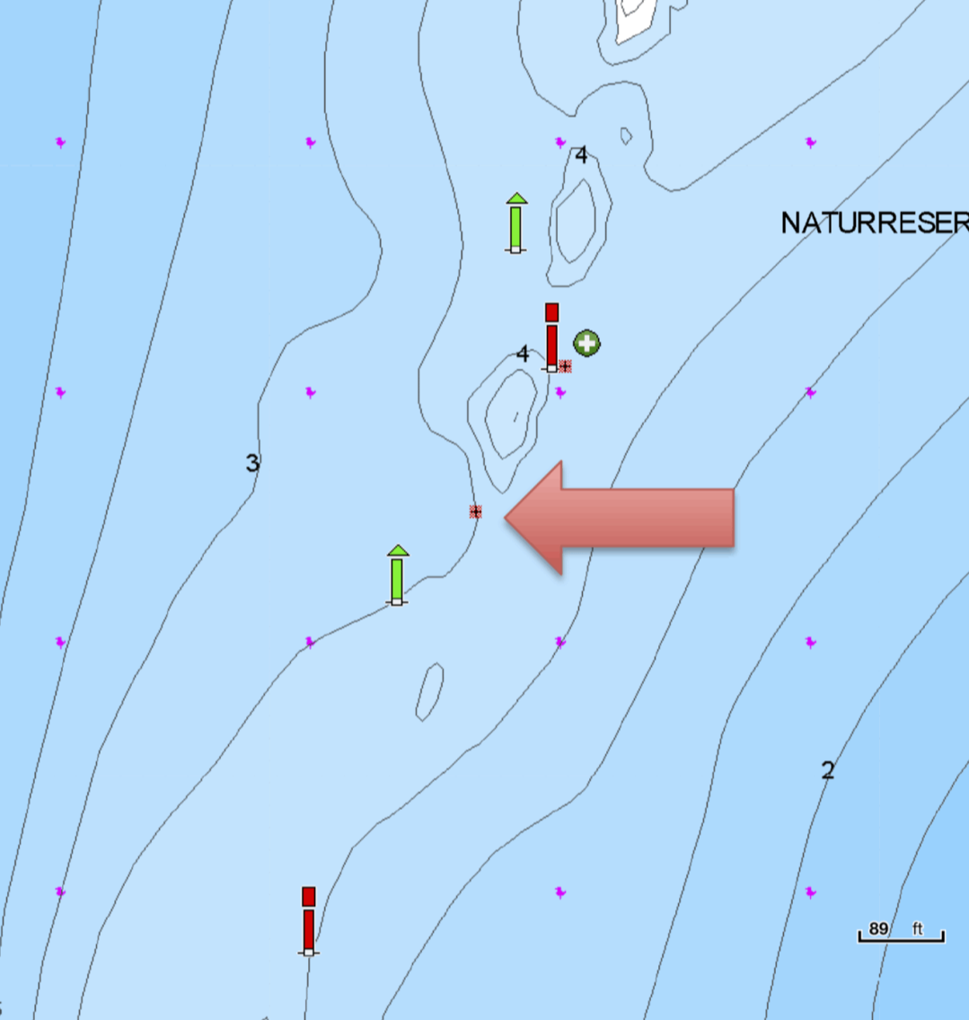 For at Søkortkontoret i Geodatastyrelsen kan give dig et fyldestgørende svar, må vi først foretage en grundig undersøgelse af tidligere sager og søopmålinger. Det er muligvis også nødvendigt, at vi kontakter de øvrige maritime myndigheder (Søfartsstyrelsen og Kystdirektoratet) for at høre til deres erindringer om hændelsesforløbet tilbage i 2014.