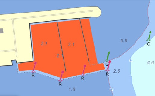 Sejlrenden skal være mindst 2,1 meter dyb. Det fremgår ikke af søkortet. Arbejdsgruppen vil søge at få dybder og søkort ført á jour i overensstemmelse med Guldborg Sunds status som nationalt gennemsejlingsfarvand.