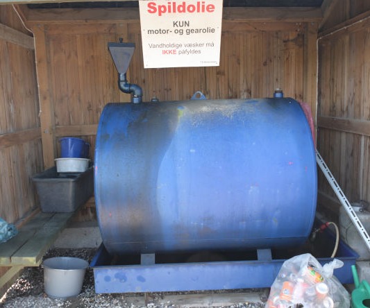 Fast olieaffald. Afleveres på off. genbrugsplads.