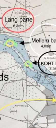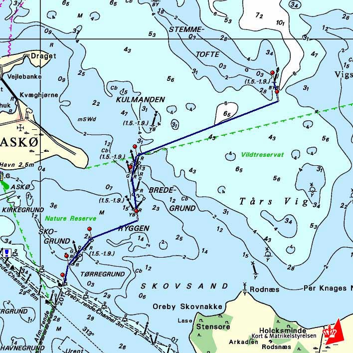 Vejledende søkort over genvejen øst om Askø, som afkorter sejlturen til Maltrup Vænge.