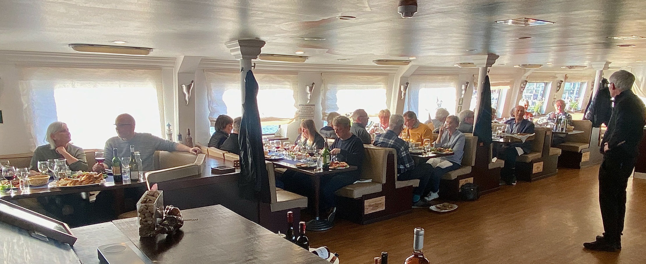 Det var en helt igennem vellykket og hyggelig aften med rundvisning på, skibet, god mad og fine vine. Vi kom bl.a gennem vores ungdoms riesling som man kunne forholde sig til. Men denne var helt fantastisk, og vi genopdagede rioja, som en helt fin oplevelse. Desuden blev der budt på velkomstdrinks, vin, Amaranta og god dessertvin. Dertil en rigtig god tapas.