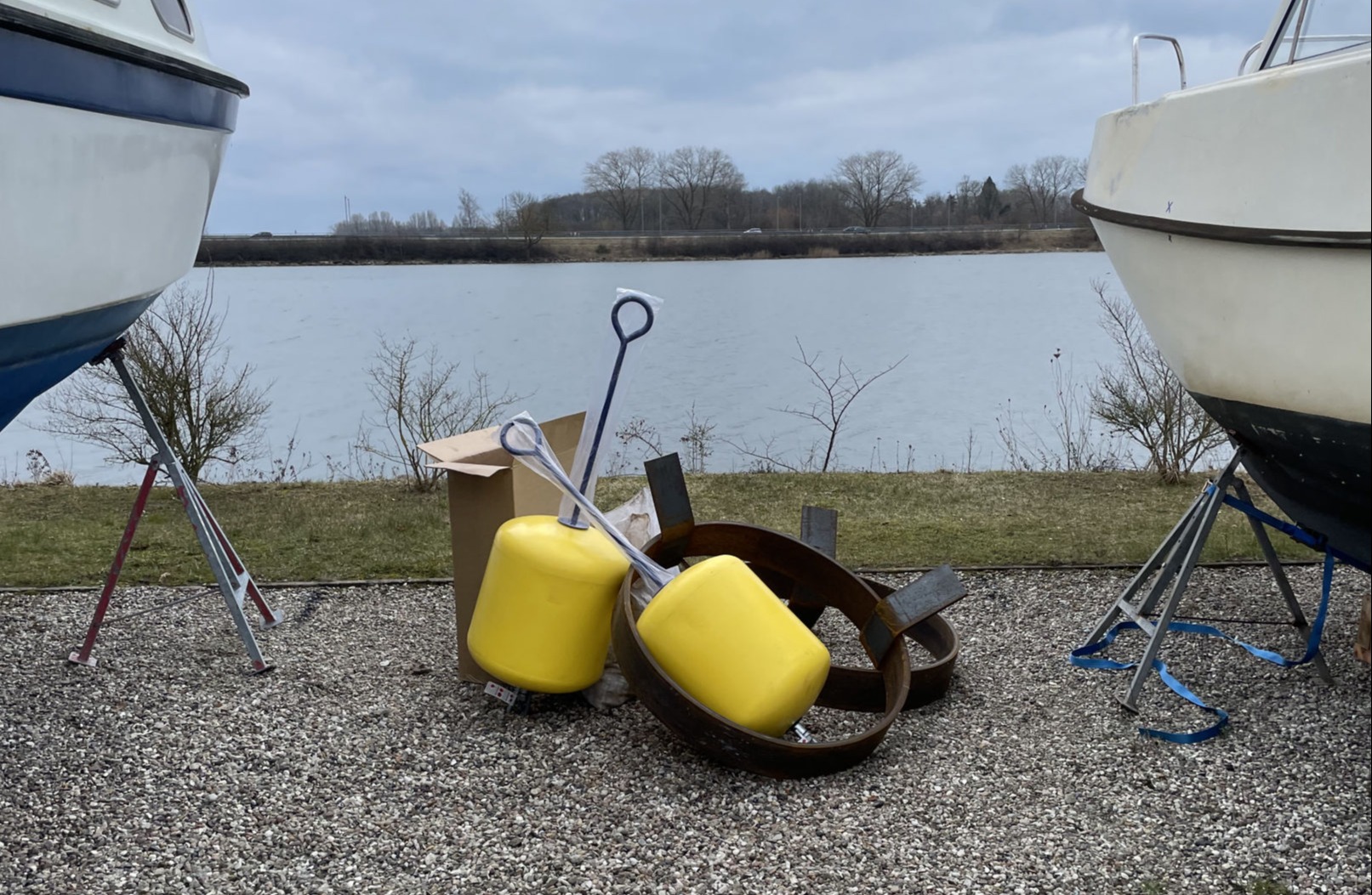Danske Tursejlere leverede 10. marts de to turbøjer, som Dansk Sejlunion har foræret Toreby Sejlklub.