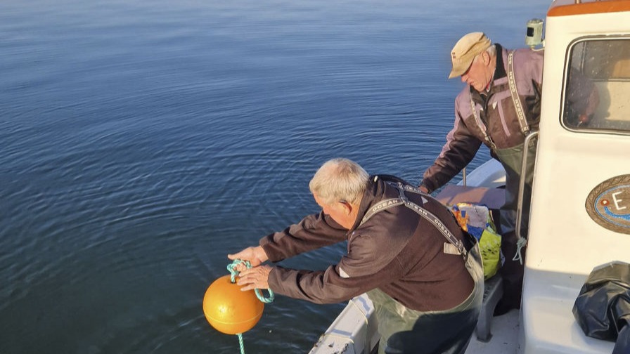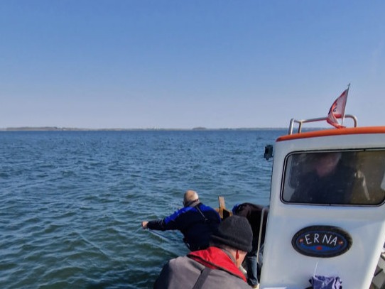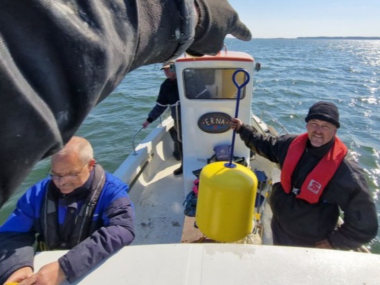 Anders Johnson trak bøjerne ud i sin fiskekutter. 22. april i flot vejr.