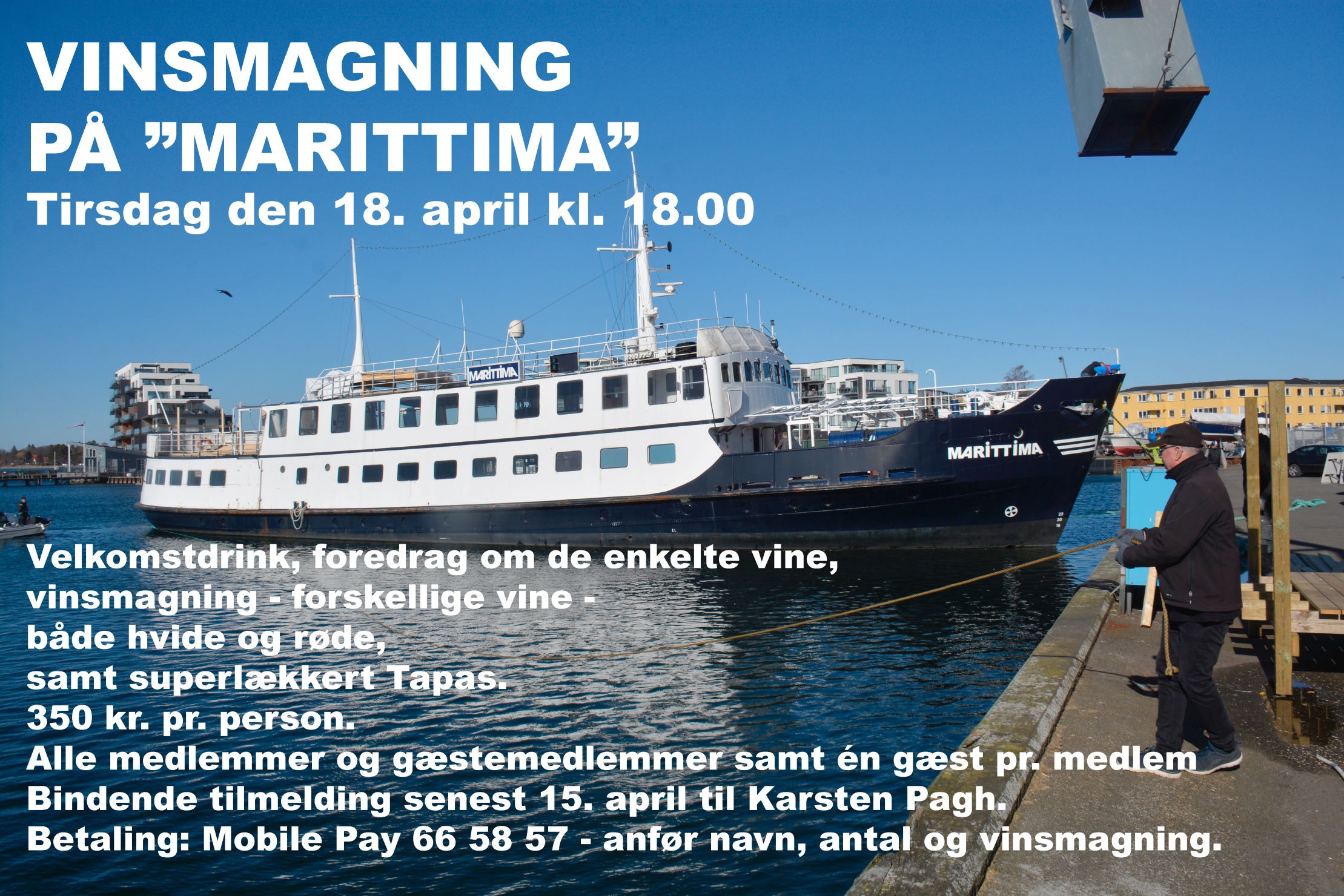 Vinsmagningen 18. april på "Marittima" med 22 tilmeldte udviklede sig til en hyggelig aften. Foto: Henrik Høy.