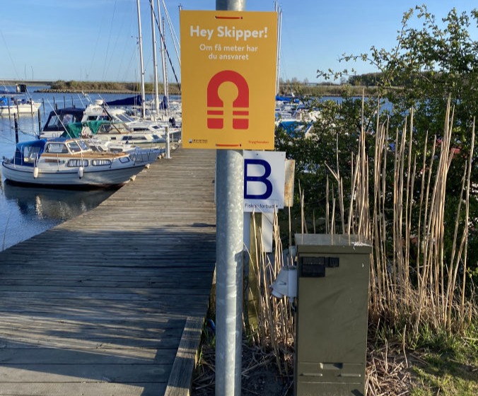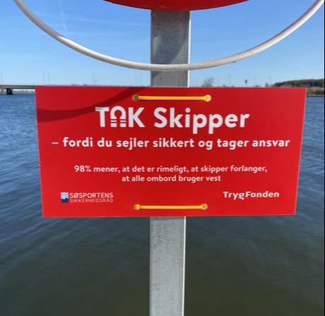 Sikkerhedsambassadør Henrik Høy har forsynet os med SejlSikkert-skilte som en påmindelse om ikke at ende som fiskeføde. Tavlerne indeholder gode råd, som man lige kan repetere på vej til båden.